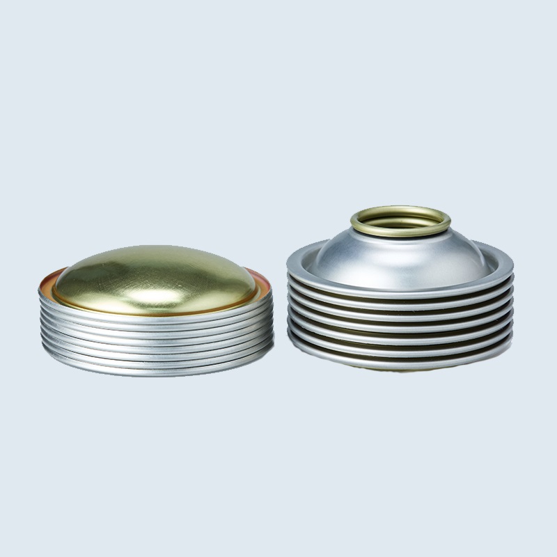 Aerosol tin cans cone and dome in diameter 65mm, with clear lacquered/Golden Lacquer.